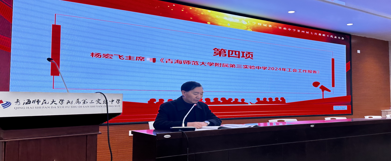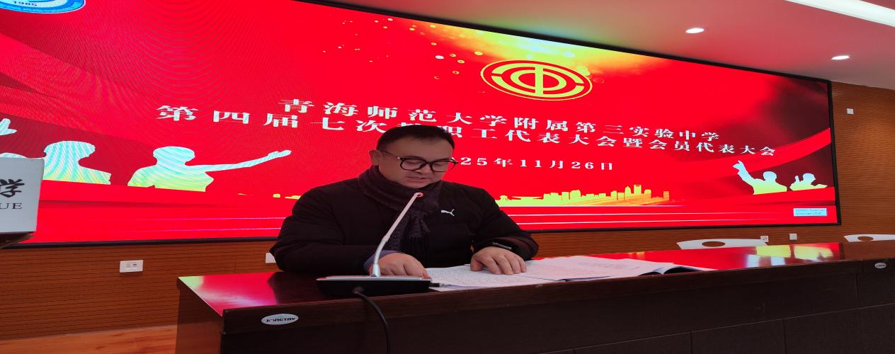 11月26日下午,青海师范大学附属第三实验中学第四届七次教职工代表大会暨会员代表大会在五楼会议室举行,出席代表31人,会议由工会主席杨宏飞主持。