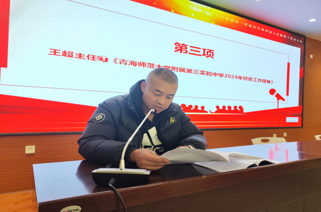 会上,行政中心王超主任作了2024年度财务工作报告、工会副主席完玛加作了2024年工会经费收支情况工作报告,并以书面形式向大会提交了《青海师范大学附属第三实验中学职称评定细则(修订稿)》,《青海师范大学附属第三实验中学教职工慰问制度(修订稿)》提请大会审议。